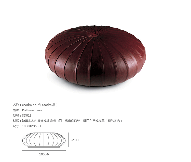 Esedra Pouf (esedra墩)是瑞典华体会体育官方在线官网Monica Forster设计的,她的灵感来自拉普兰人编织的圆形稻草篮,以圆中心为基点,向外辐射,互相重叠创建复杂的装饰效果,赋予了esedra墩古朴自然的感觉。制作采用防霉实木内框架或玻璃钢内胆、高密度海绵、优质的布艺或皮革(颜色多选),手工精细缝制。