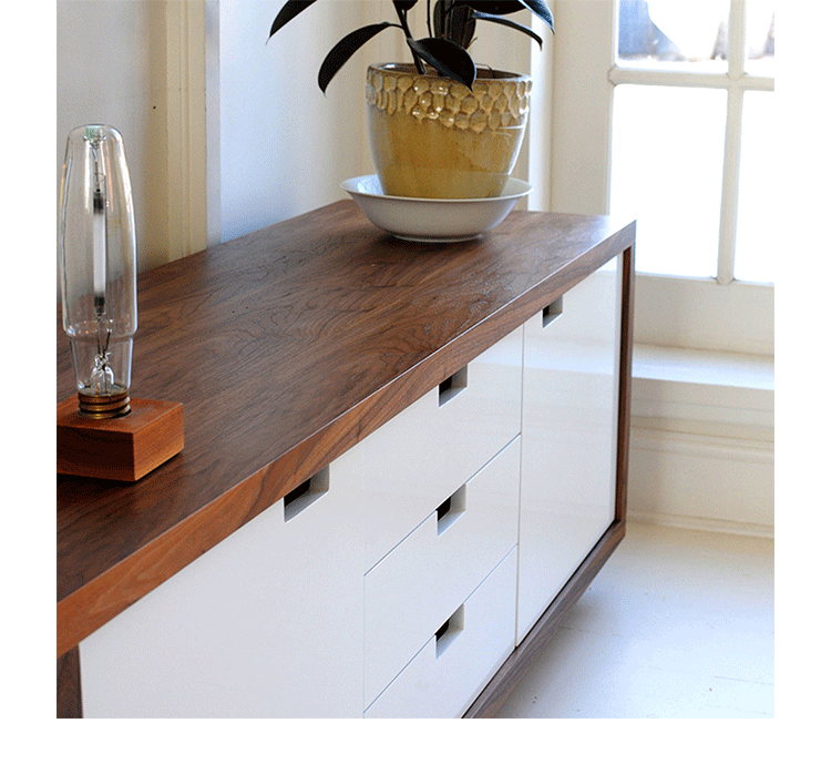 wilson cabinet(威尔逊柜)是一个多功能存储柜,辅之以白色多外套漆的门和抽屉。它具有集成的句柄和自闭的五金器件。门掩可调式货架。为客厅、餐厅或卧室的现代存储理想之选。制作采用精选MDF板基材胡桃木或水曲柳木皮贴面、胡桃实木或水曲柳实木脚架、环保净味油漆喷涂,做工精湛。