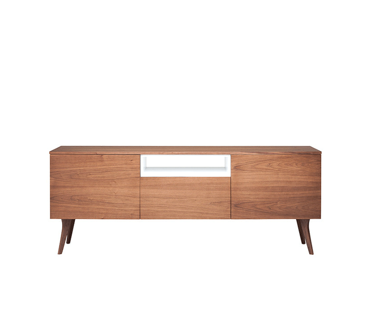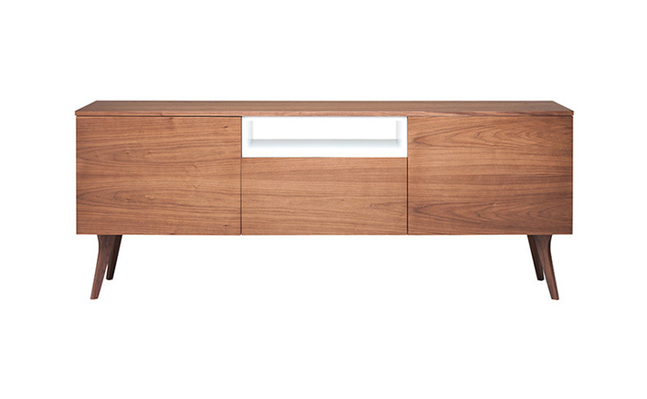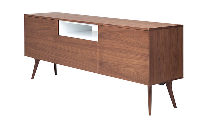 carson buffet(carson柜)是Kardiel公司制作的经典实木家具,设计可爱有个性,自然、朴素的外观。它具有美国胡桃木单板框架和脚架。其开放的区域包括一个有明亮的白漆架子,形成鲜明的对比。Finn Juhl和 Arne Vodder 最先尝试胶木和天然木的组合运用。这是大胆的创新,他们结合传统的新鲜的新兴技术与现代主义的概念。制作采用精选MDF板基材胡桃木或水曲柳木皮贴面、胡桃实木或水曲柳实木脚架、环保净味油漆喷涂,做工精湛。