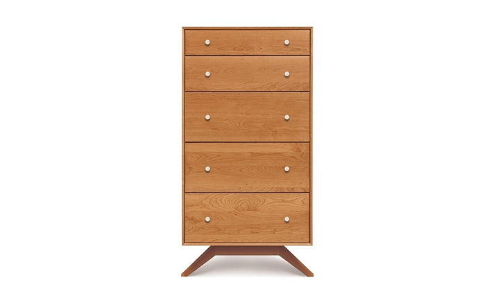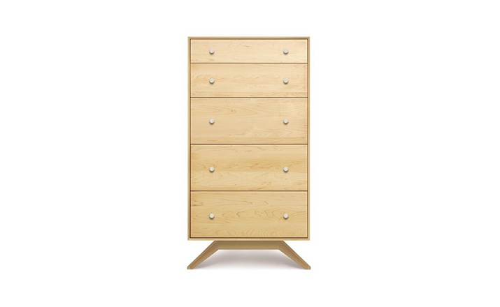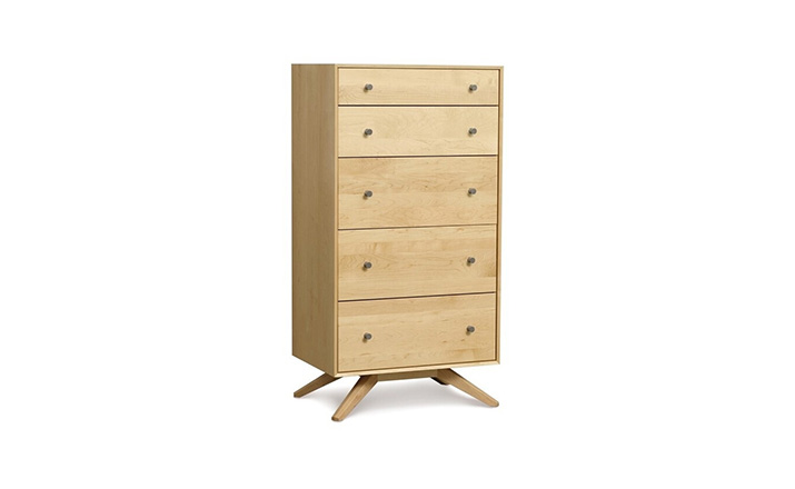 astrid 5 drawers dresser(阿斯特丽德5抽梳妆台)是Copeland Furniture公司astrid实木梳妆台系列之一,宽大的八字形脚架非常吸引人注目,制作并非易事,它其实是一个大工程,同时能引发无限期望和激情,5个平滑抽屉,可以给与提供许多存储空间。制作采用精选MDF板基材、进口美洲胡桃或水曲柳或枫木皮贴面、实木脚架、环保净味油漆喷涂、做工精湛。