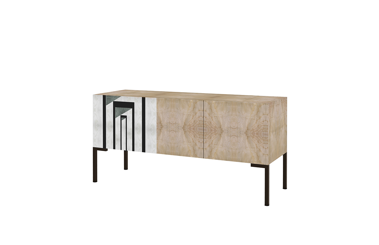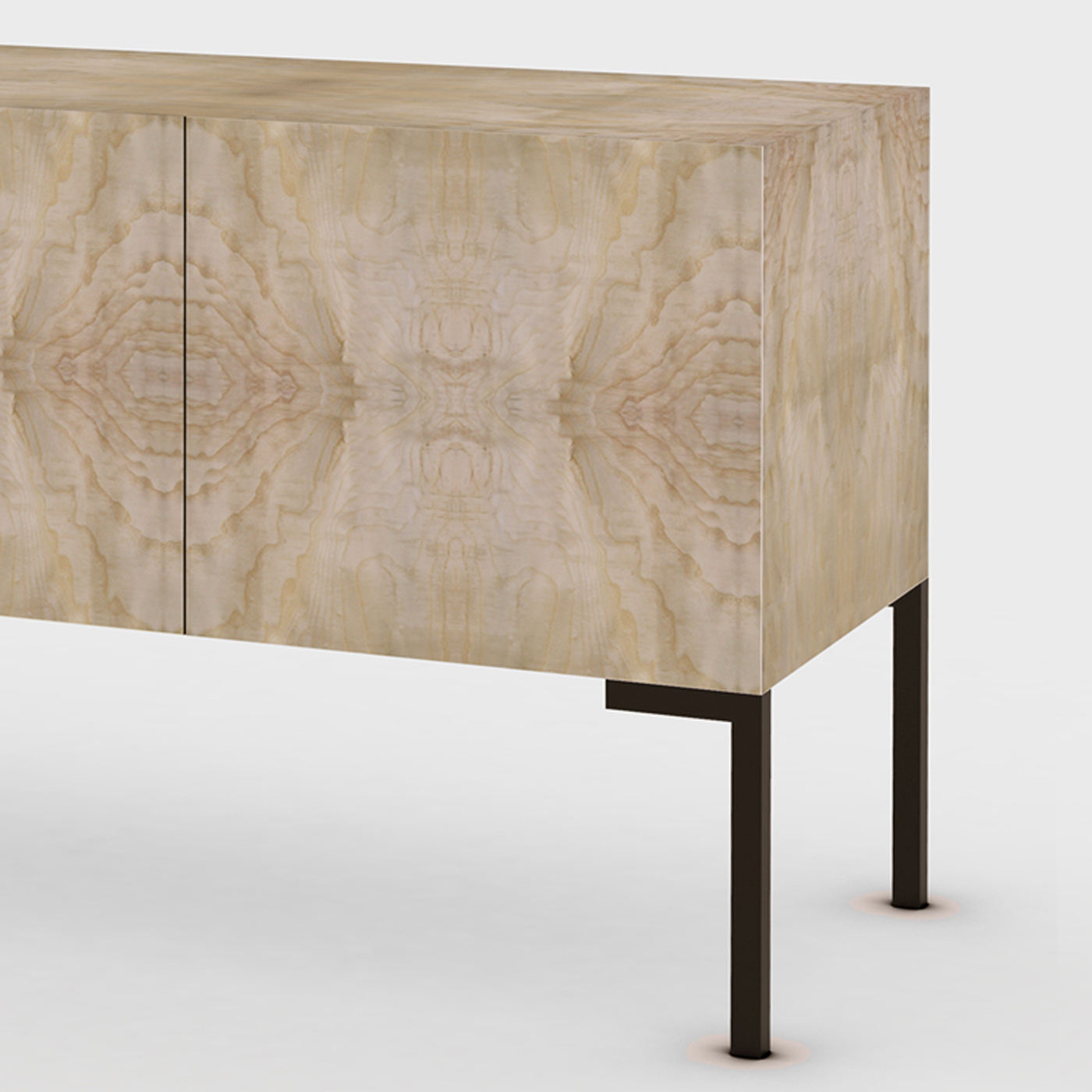 这个精巧三门餐具柜与橄榄灰木完成,支持与铁腿。 部分的前面板是装饰用乌木和增白灰木繁殖一系列开槽空间使用的传统技术错错。 这种引人注目的装饰了,让这段复杂的古玩。