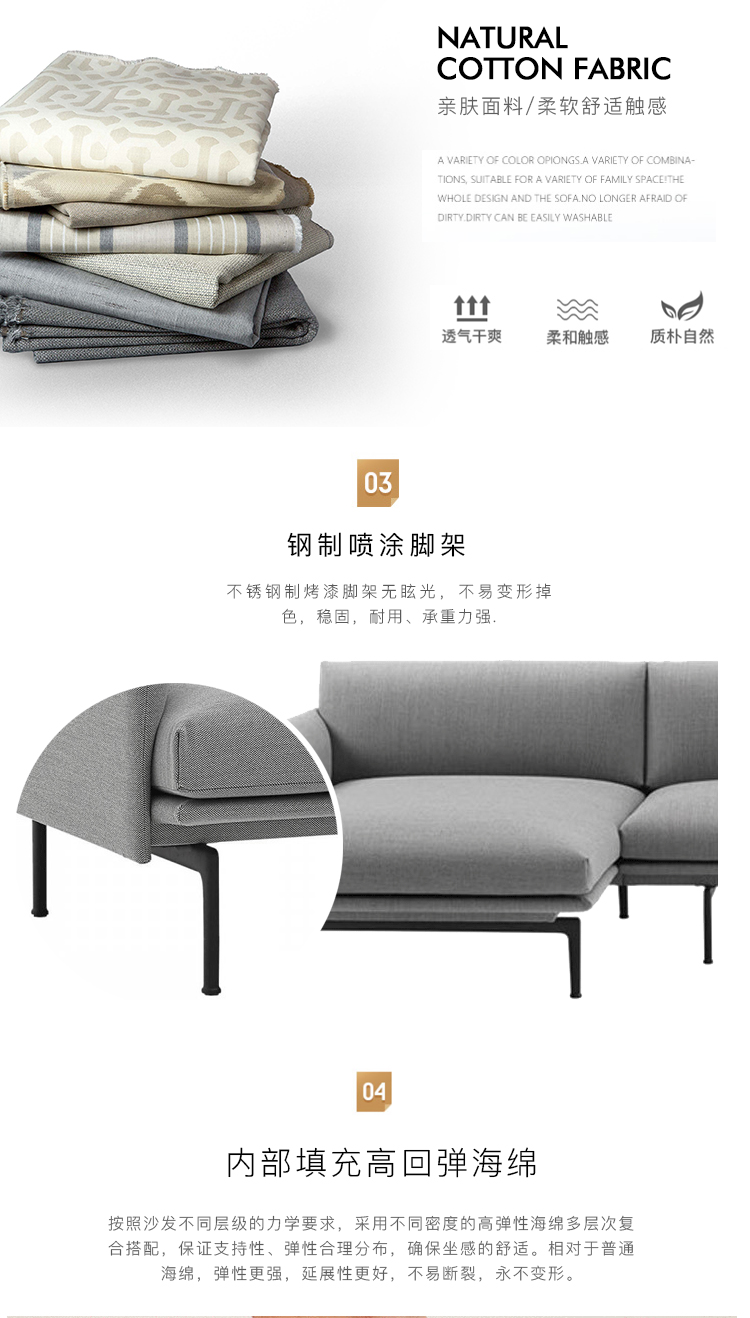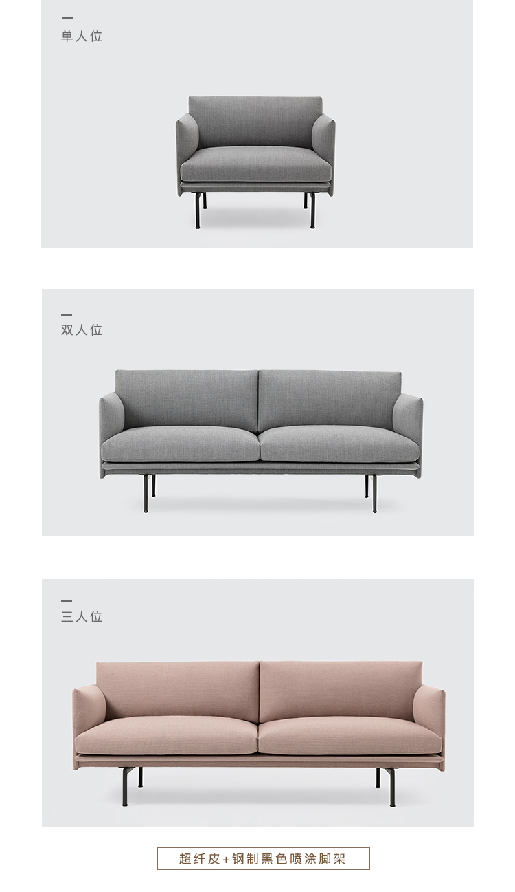“轮廓”沙发是款强调舒适感,但保有轻量视觉感受的沙发。不同一般沙发的强调厚实分量感,“轮廓”系列则以轻盈的视觉质感打造大器的沙发。结构上遵循斯堪的纳维亚风格的简单和谐,在光影变化之下所呈现的稳固但纤细的精致感受。