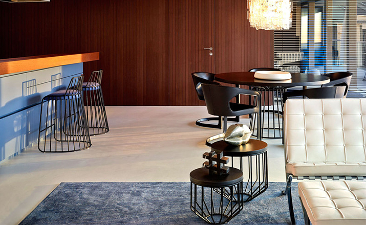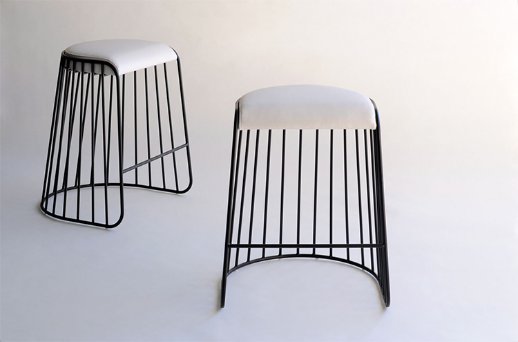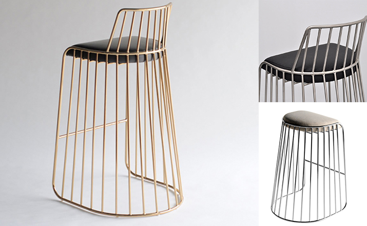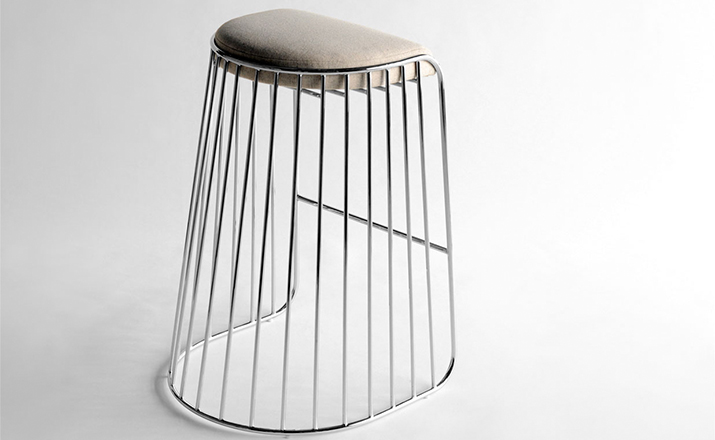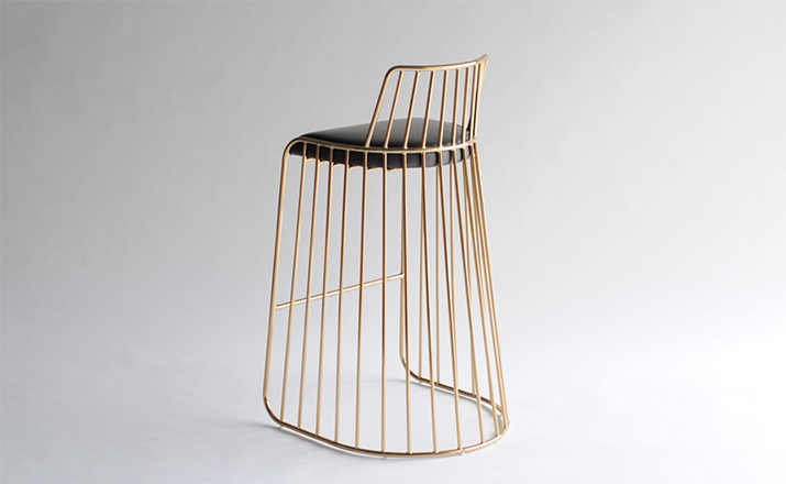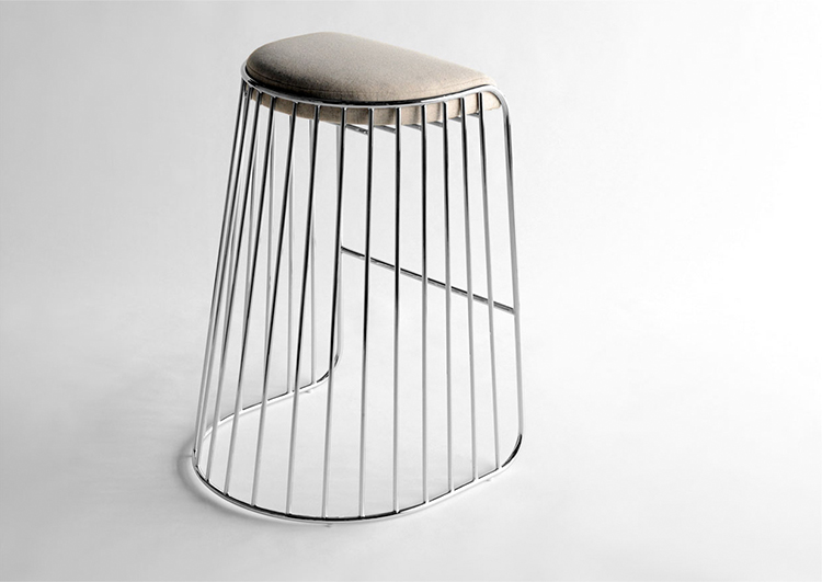 "The Bride's Veil Stool family’s unique language is meant as a graceful alternative to the archetypal bar stool.The strikingly elegant metal base is available in smoked brass,polished chrome,burnt copper,or powder coat,while the top is offered in COM upholstery.At every angle these stools offer a visual treat"