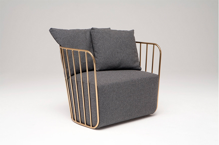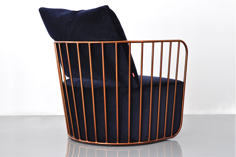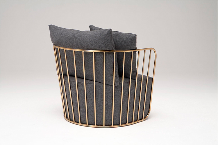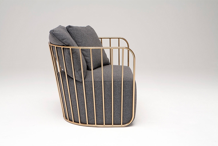 "The Bride's Veil Stool family’s unique language is meant as a graceful alternative to the archetypal bar stool.The double stool is the perfect solution for you and your date to enjoy sitting together uninhibited by separate stools.The strikingly elegant metal base is available in smoked brass,polished chrome,burnt copper,or powder coat,while the top is offered in COM upholstery.At every angle these stools offer a visual treat."