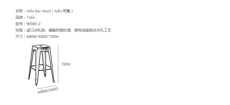 tolix chair(tolix椅)一把有味道、有态度的椅子,据说它最开始被使用在一艘战舰的天气预报房间里,故事的真实性与否不得而知,但是不影响其成为享誉世界的著名设计家具,1934年由Xavier Pauchard设计,早期是作为户外用家具设计,力图展现法式慵懒而闲适的气质,经年而来被全世界时尚华体会体育官方在线官网所宠爱,从室外扩展到家居、商业、展示等多个用途,而此椅也不负众望在各类空间中均有上佳表现,特别是近年来与混搭、乡村、美式、怀旧、北欧简约、中式等主要装修风格搭配,都呈现出独特的韵味,也被时尚界赞为“百搭第一”椅,可以用在酒吧,餐馆,咖啡馆等等地方,之后通过改进,设计出有扶手版本的tolix armchair(tolix扶手椅),高背版本的tolix high back bar stool(tolix高背吧凳),宽背版本的tolix wide back bar stool(tolix宽背吧凳),及tolix bar stool(tolix吧凳)和tolix mini stool(tolix迷你凳)。制作采用进口冷轧钢、磷酸防锈处理、静电油漆喷涂工艺、坐面为木板或PU海绵坐垫,颜色可选。