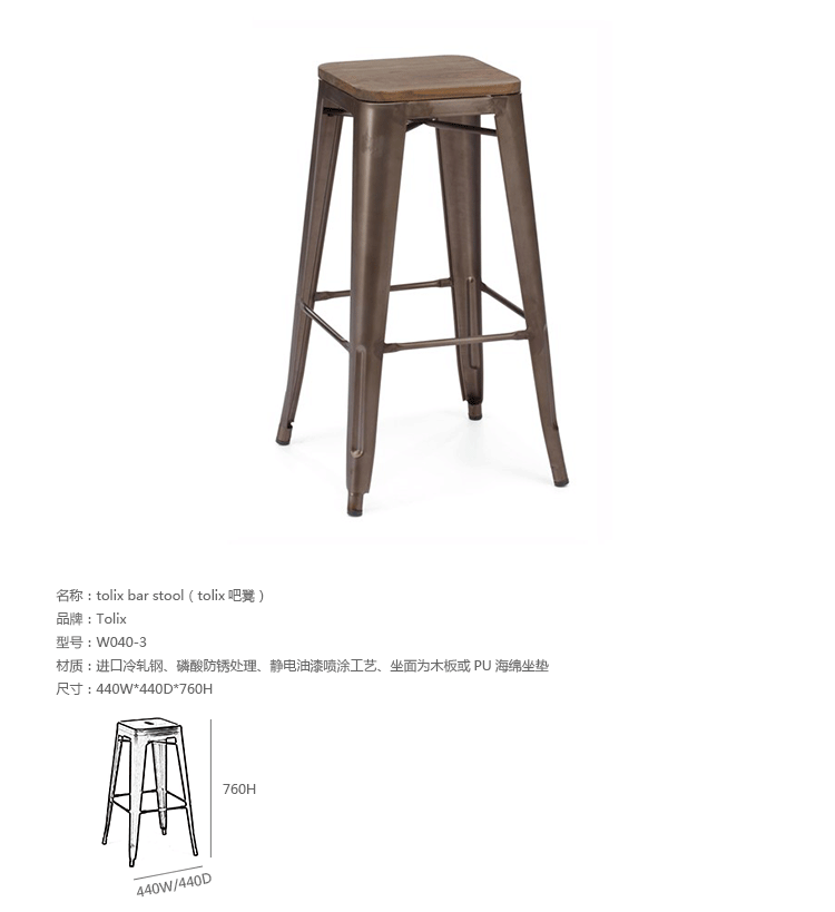 tolix chair(tolix椅)一把有味道、有态度的椅子,据说它最开始被使用在一艘战舰的天气预报房间里,故事的真实性与否不得而知,但是不影响其成为享誉世界的著名设计家具,1934年由Xavier Pauchard设计,早期是作为户外用家具设计,力图展现法式慵懒而闲适的气质,经年而来被全世界时尚华体会体育官方在线官网所宠爱,从室外扩展到家居、商业、展示等多个用途,而此椅也不负众望在各类空间中均有上佳表现,特别是近年来与混搭、乡村、美式、怀旧、北欧简约、中式等主要装修风格搭配,都呈现出独特的韵味,也被时尚界赞为“百搭第一”椅,可以用在酒吧,餐馆,咖啡馆等等地方,之后通过改进,设计出有扶手版本的tolix armchair(tolix扶手椅),高背版本的tolix high back bar stool(tolix高背吧凳),宽背版本的tolix wide back bar stool(tolix宽背吧凳),及tolix bar stool(tolix吧凳)和tolix mini stool(tolix迷你凳)。制作采用进口冷轧钢、磷酸防锈处理、静电油漆喷涂工艺、坐面为木板或PU海绵坐垫,颜色可选。