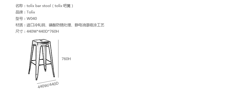 tolix chair(tolix椅)一把有味道、有态度的椅子,据说它最开始被使用在一艘战舰的天气预报房间里,故事的真实性与否不得而知,但是不影响其成为享誉世界的著名设计家具,1934年由Xavier Pauchard设计,早期是作为户外用家具设计,力图展现法式慵懒而闲适的气质,经年而来被全世界时尚华体会体育官方在线官网所宠爱,从室外扩展到家居、商业、展示等多个用途,而此椅也不负众望在各类空间中均有上佳表现,特别是近年来与混搭、乡村、美式、怀旧、北欧简约、中式等主要装修风格搭配,都呈现出独特的韵味,也被时尚界赞为“百搭第一”椅,可以用在酒吧,餐馆,咖啡馆等等地方,之后通过改进,设计出有扶手版本的tolix armchair(tolix扶手椅),高背版本的tolix high back bar stool(tolix高背吧凳),宽背版本的tolix wide back bar stool(tolix宽背吧凳),及tolix bar stool(tolix吧凳)和tolix mini stool(tolix迷你凳)。制作采用进口冷轧钢、磷酸防锈处理、静电油漆喷涂工艺、坐面为木板或PU海绵坐垫,颜色可选。