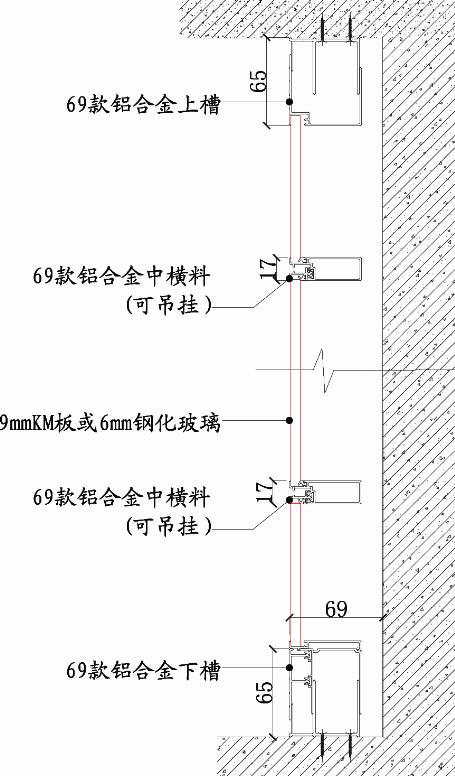 左图为69mm单面高隔断剖视图 |