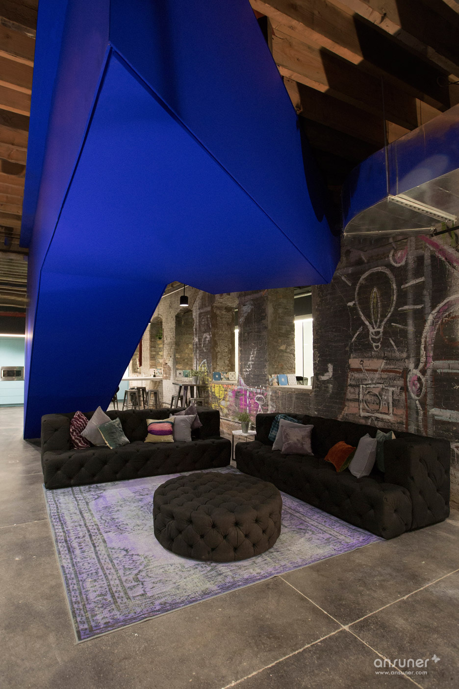 由金属板折叠而成的空间造型,创建了多元化的功能用途,动感的造型不仅成为空间的焦点,也巧妙构筑出有趣的共享空间。