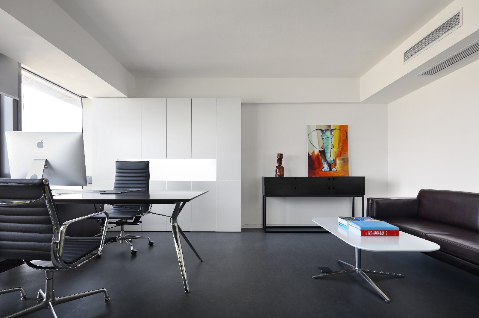办公室内全部采用透明玻璃隔墙,最大限度的引入自然光线,并起到很好的隔音效果。左侧是洽谈区,右侧,华体会体育官方在线官网巧用原始建筑落差,在储物间门边设置了吧台,二者功能分开又相互结合。重要客户在此可以伴着红酒、咖啡促膝长谈。