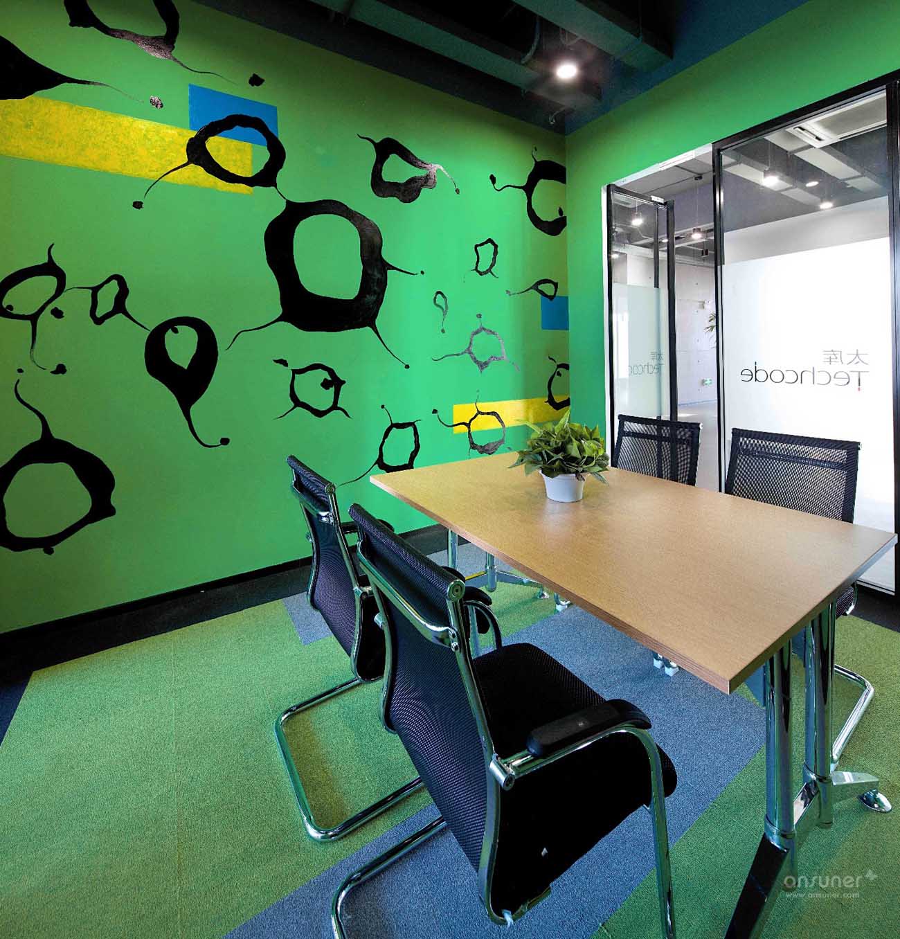 入口处醒目的大红色门厅,墙壁饰面采用集装箱纹理,与接待台后的木色饰面即形成了鲜明对比,同时又烘托出了温暖、开放的环境氛围,独特的工业风格特色让人第一眼就留下深刻印象。铁制的接待台经过特殊锈化处理,展现出了斑驳仿旧的视觉效果。