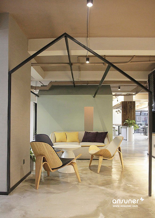有效区分了空间,同时,将工作和休闲进行融合。整个空间在动线功能分区上更加开放、通透、亲密。
