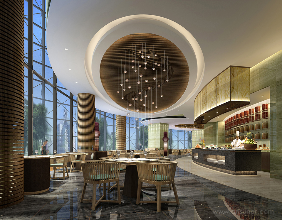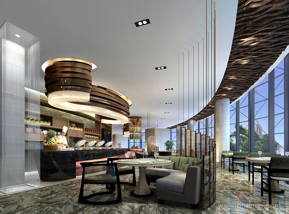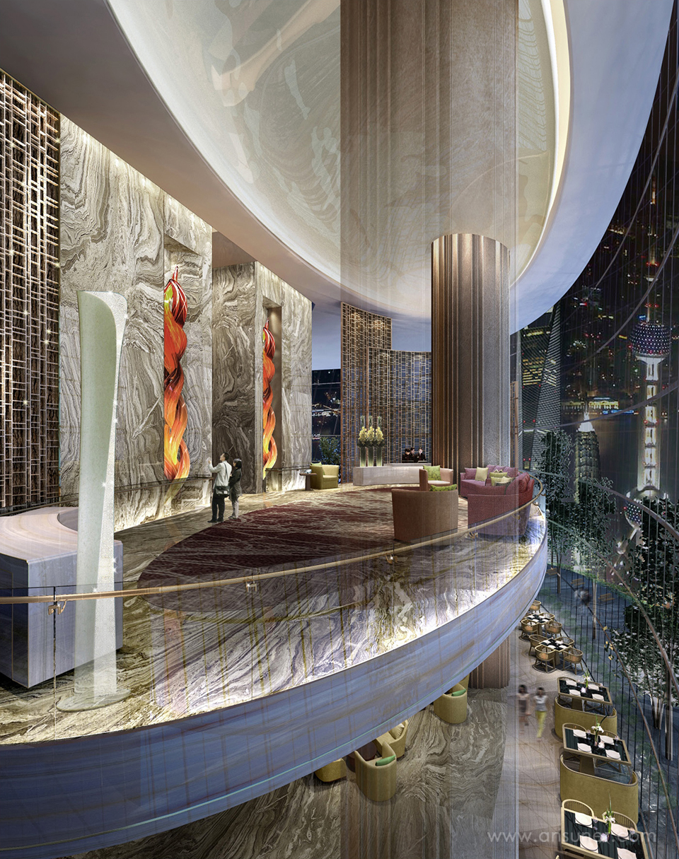 在大堂和宴会厅等主要公共空间放置大型主题公共雕塑,与气势磅礴的智能艺术装置、壁画共同构成J酒店文化主题观。 公共艺术的互动特质成为客人值得记忆的酒店名片,壮观的城市意境与主题艺术交相辉映,令人流连。