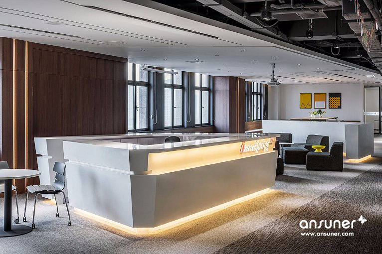一间具有创新精神的新锐互联网公司需要怎样的办公空间?通联数据从一个非传统方正结构的前台开始,开启颠覆性的空间组织。“时尚雅痞”成为风格基调,设计从星球大战中获取灵感,采用富有未来科技感的视觉元素。走廊等公共空间中使用了多边形及放射性的设计语汇,不同材质穿插其间,增加了空间的层次感,并在视觉上尽可能地延展空间。开放的办公空间内,员工工位可以进行灵活组织,根据需求进行变化,打破了传统办公的层级观念。墙面上使用方便涂写擦除的材料,并配备了充分的储物空间。