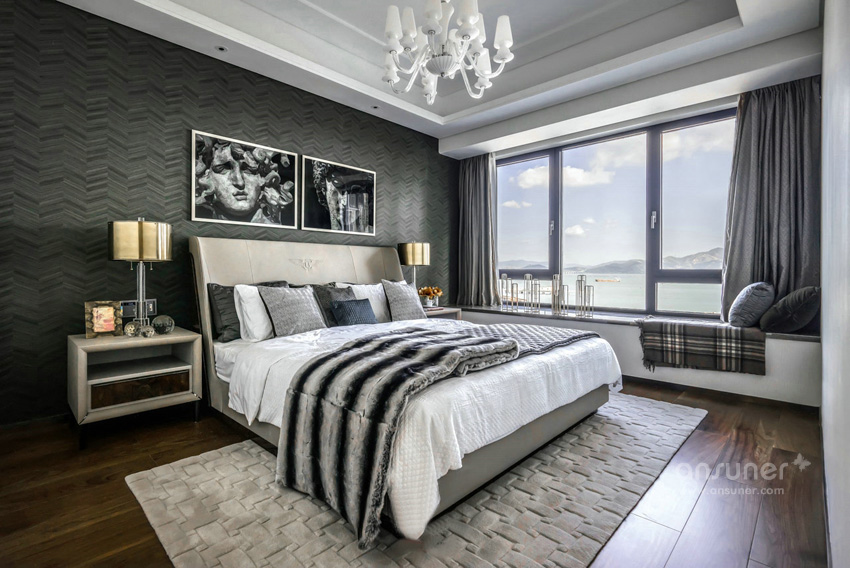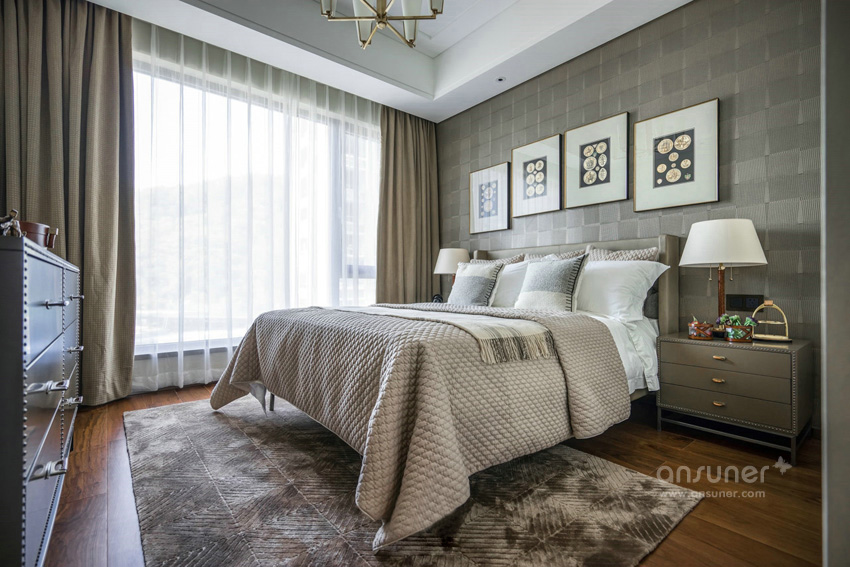 华体会体育官方在线官网利用对色彩的敏锐视角,以做旧的古罗马灰为主色调表达了主卧空间的优雅和感性,独具风情的格纹地毯,工艺精细的斗柜,艺术装饰画和精心布置的装饰品,让空间有着不同韵律的过渡。