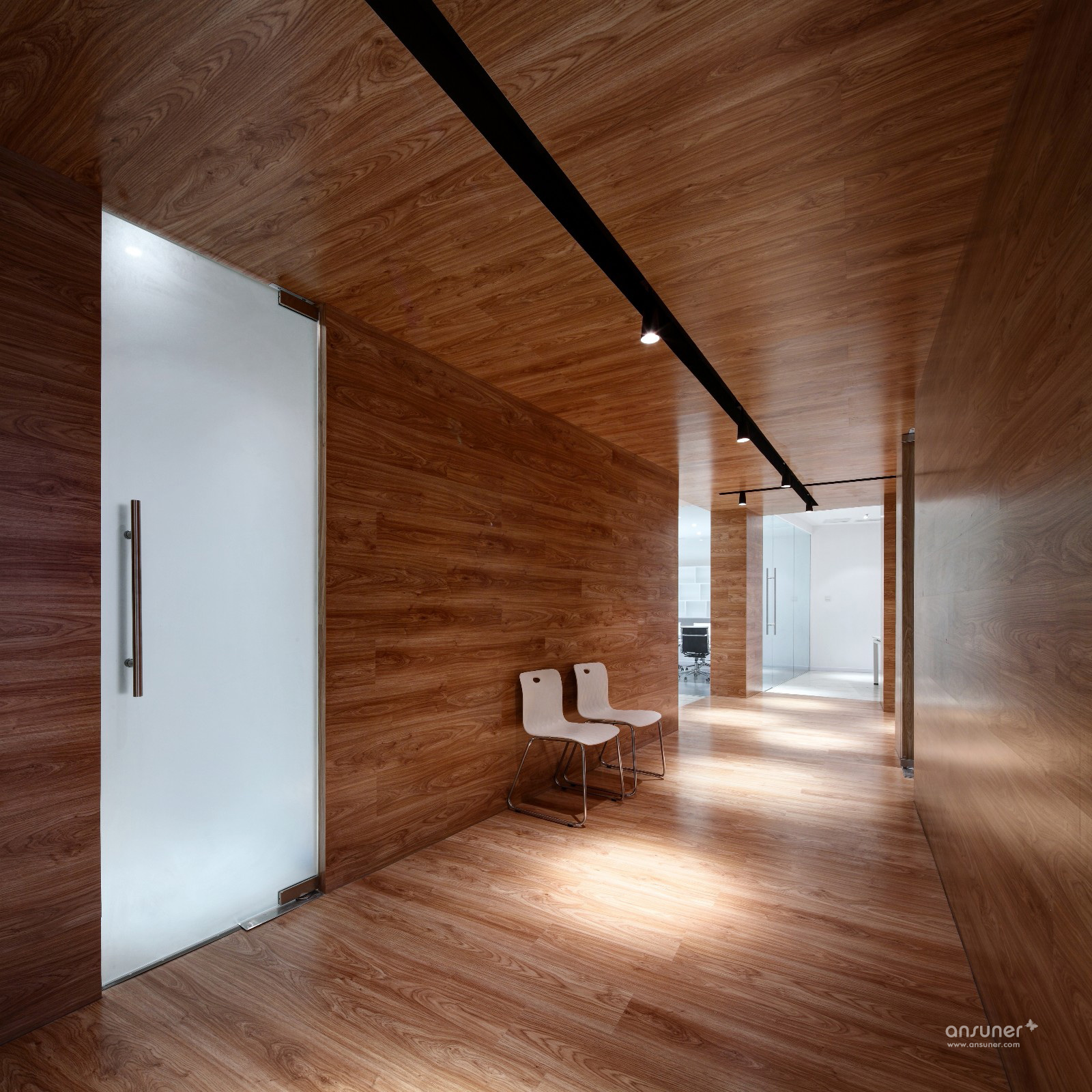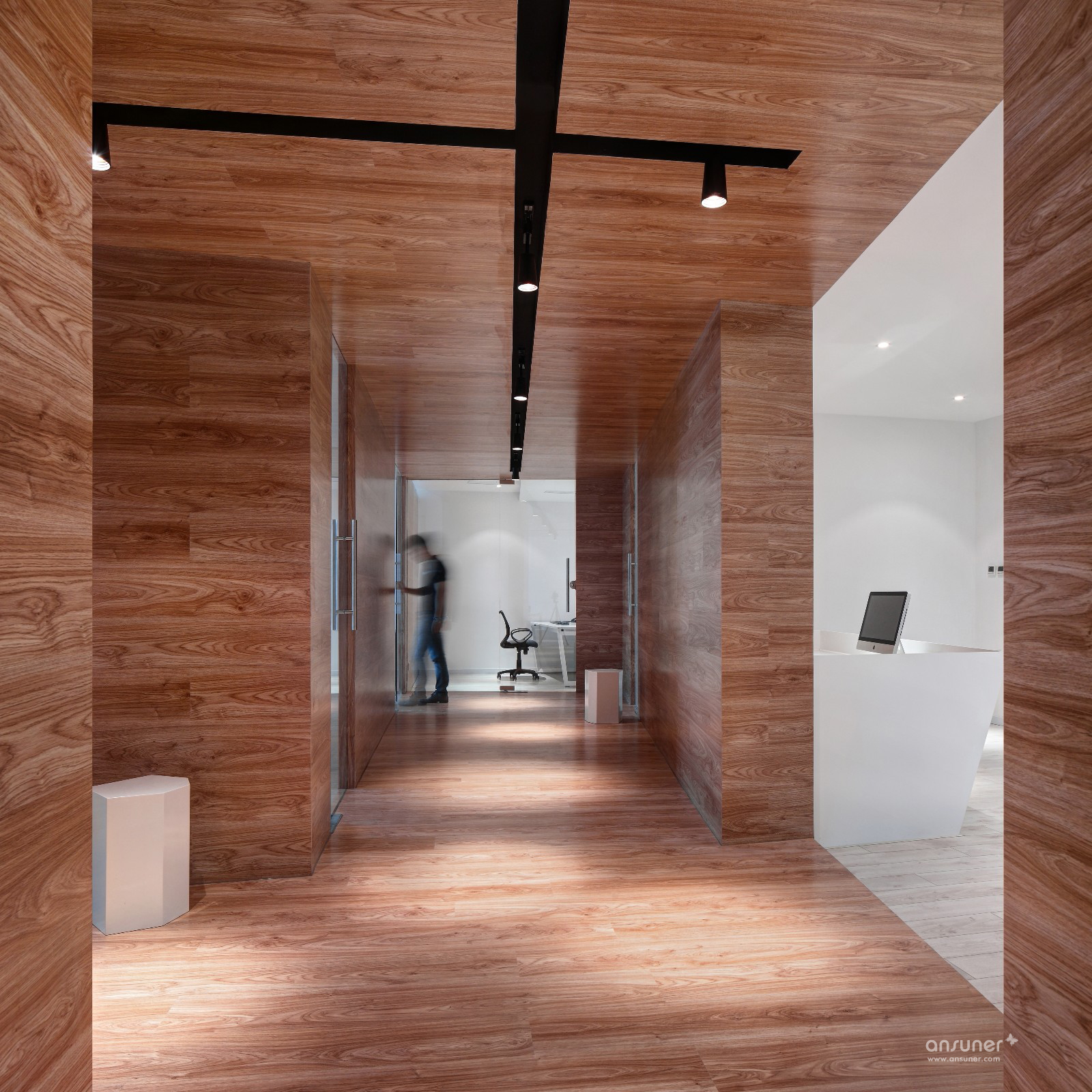 盒子,一个简单的元素.。但在这里,它却是最大的价值体现者。封闭的盒子组合成两条不规则的过道,串联起每一个功能区。会议室采用大面积透明玻璃隔墙,显得通透且敞亮。整个空间以白色调为主,这与公司的文化保持一致,也与木色地板整包的“盒子”相得益彰。灯光,在满足照明的情况下,每盏灯都像是一颗随意丢出的石子,随意而不刻意!总之整个设计没有循规蹈矩,既满足了办公需要,又令使用者可以在里面愉悦的工作。