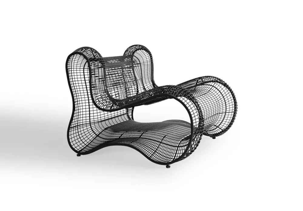 Pigalle背后的灵感源自一个经典的来源:女性身体的轮廓。在手工雕刻的钢架上,用超过3000个绳结将几股蕉麻绳单独手工打结。