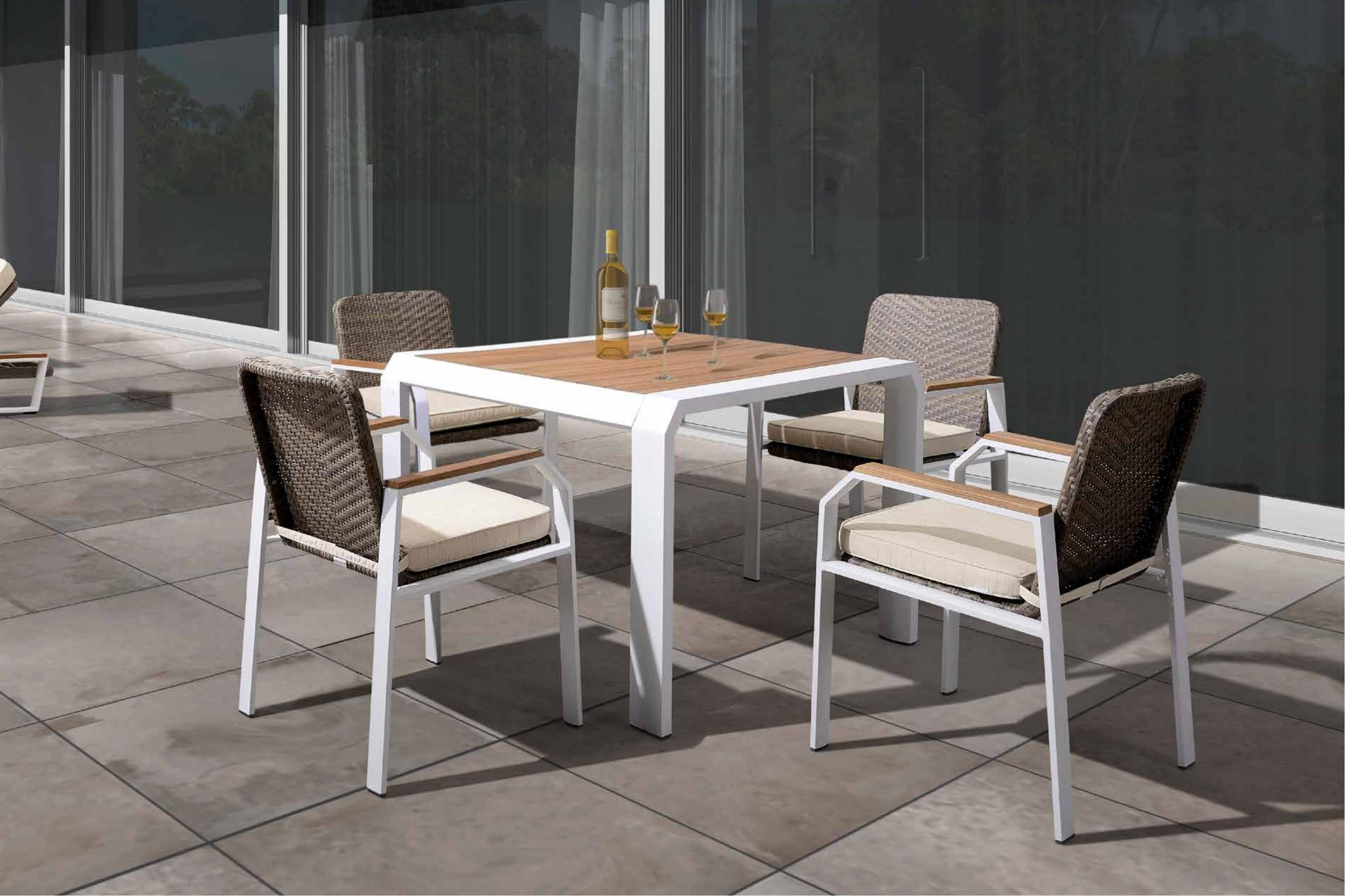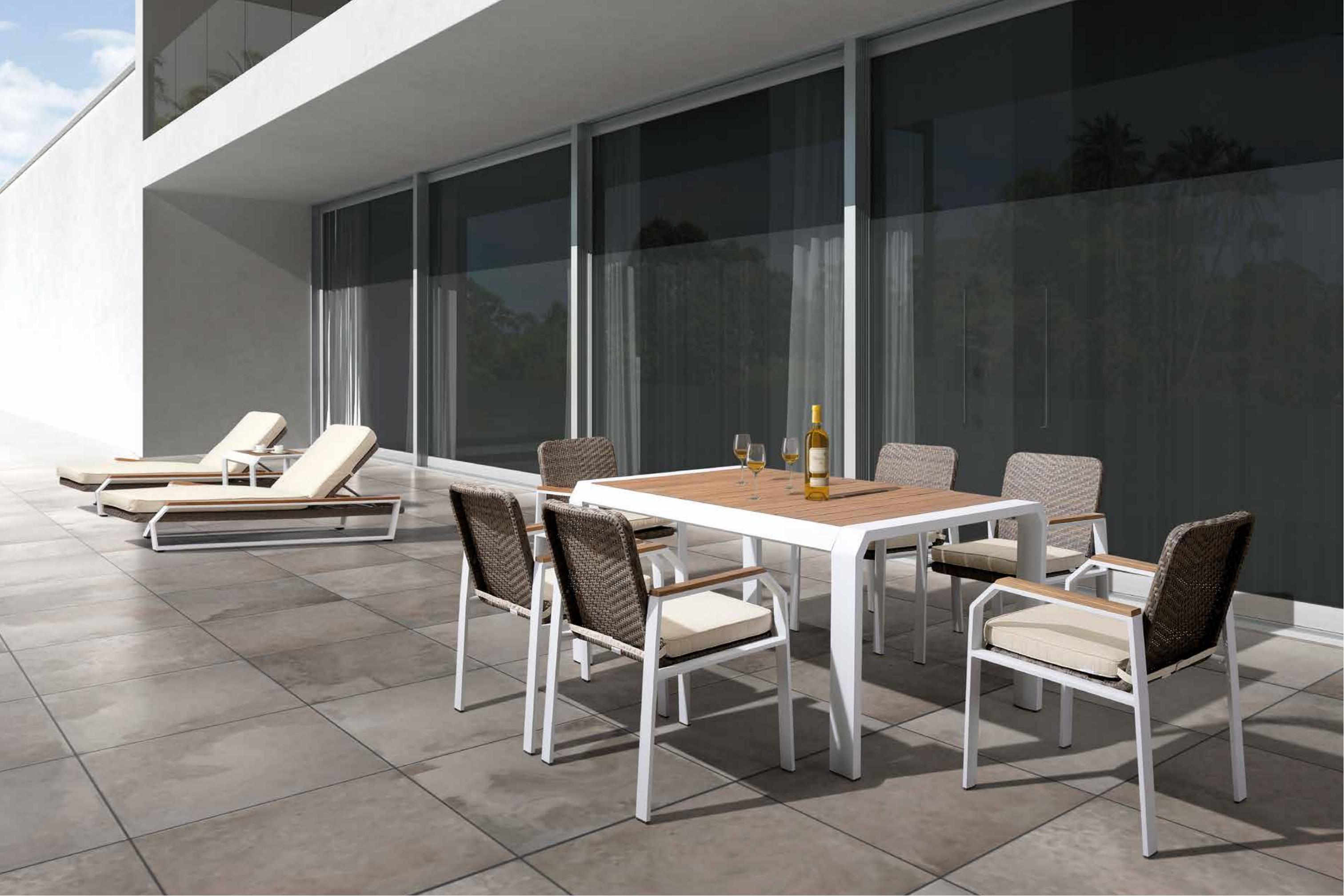 缇可曼户外休闲系列将体现自然的木色用得恰到好处,柚木的扶手和桌面,经历了工匠精心的裁切打磨,呈现出原木的精髓,在户外的阳光里,享受了阳光照耀,连触感都有了木质特有的温润,让人慵懒而放松。